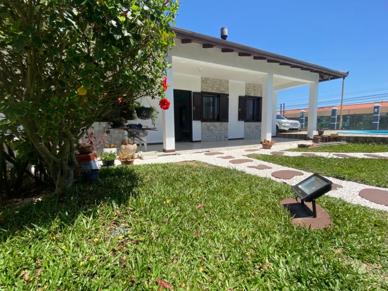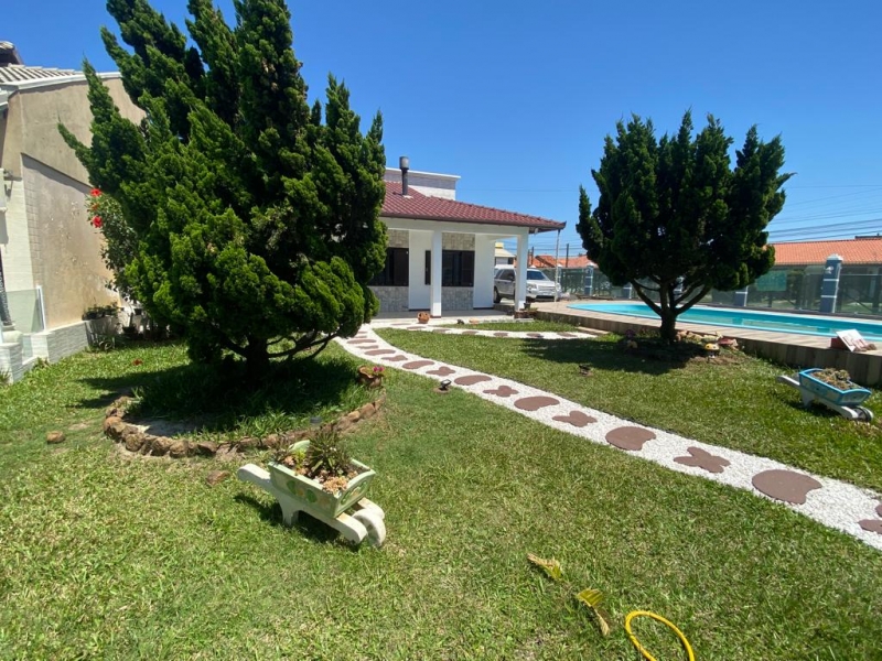 Casa maravilhosa, fino acabamento com gesso, parede da sala 3D em gesso, piso porcelanato, lindo jardim com piscina, área na frente com a melhor posição solar de frente ao mar, casa composta por 3 quartos sendo uma suite, banheiro social, garagem fechada p 2 carros, churrasqueira, cozinha sob medida, ficará mobiliada. Aceitamos proposta. ????
